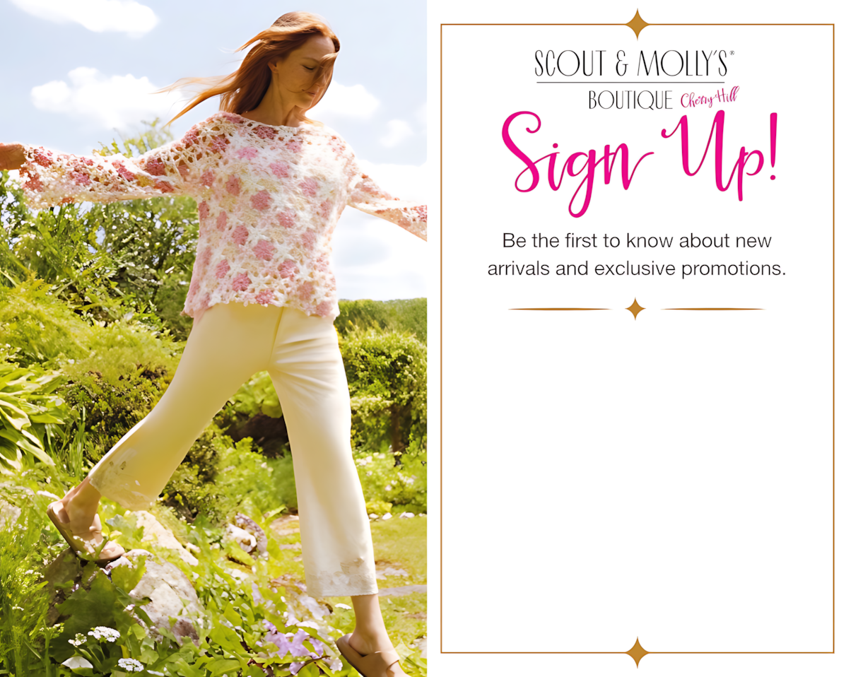 Welcome to Scout & Molly’s Cherry Hill in NJ! Lana and her team are here to help you find the perfect style, whether you’re looking for your new favorite comfy jeans and top, a special occasion dress, or the ideal vacation outfit. We bring you the latest from top designers and brands unique to the area, along with knockout accessories. Best of all, our fun, no-pressure shopping experience and honest feedback from our experienced Stylists make it feel like you’re shopping in your best friend’s closet. Stop by our Cherry Hill Boutique today, we’d love to get to know you and become your go-to for all things fashion!
