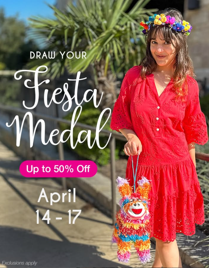 🎉 Draw Your Fiesta Medal for a Discount! 🎉 April 14–17 at Scout & Molly’s Quarry Village! Pull a medal to reveal your surprise discount up to 50%. It’s Fiesta fashion with a fun twist. Come celebrate and save! 💃✨