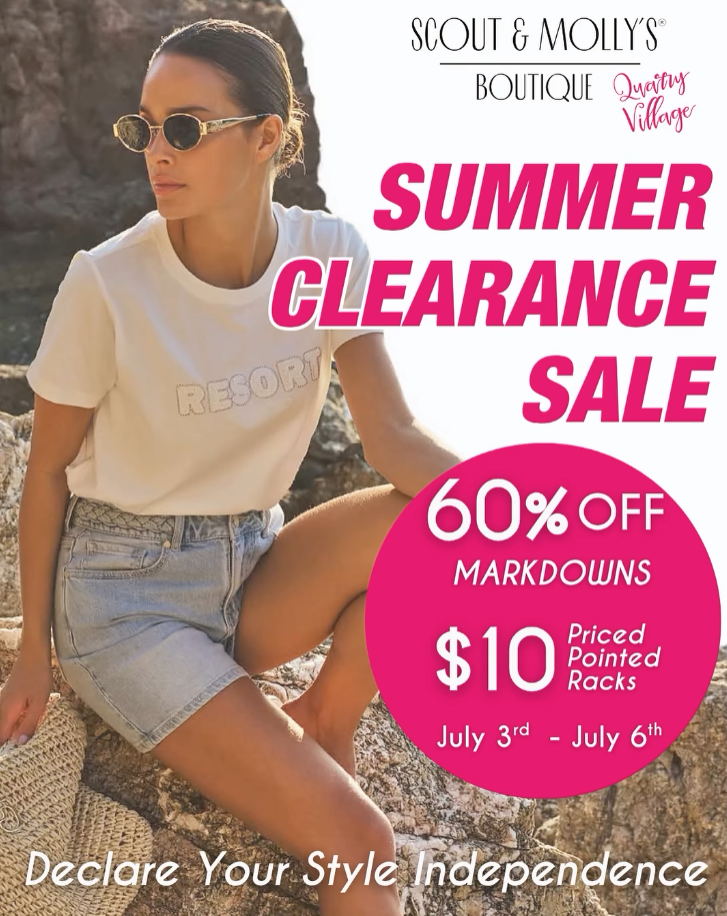 Our Salute Your Style Sale starts Thursday, and it’s one you won’t want to miss. 30% off full-price styles 50% off markdownsGet ready to treat yourself and refresh that closet. See you soon at Scout & Molly’s Quarry Village!